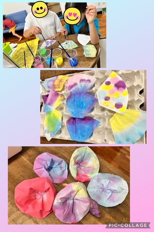 コーヒーフィルターに絵の具をにじませて〜
