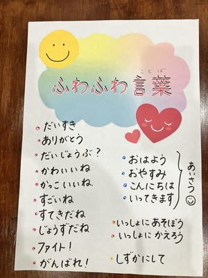 子ども達と、ふわふわ言葉をたくさん使えるようになるといいね、言葉の言い換えも大事だね、という事を話し合えました。