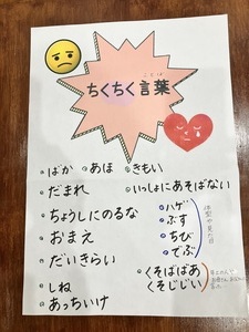 低学年の子から「ふわふわ言葉の中に〝しずかにして〟ってあるけど、それってちくちく言葉じゃないの?」という疑問が生まれました。