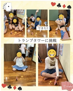 2枚のトランプタワーに挑戦し、できた記念で写真をパシャリ