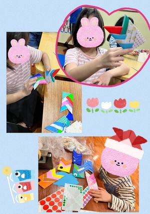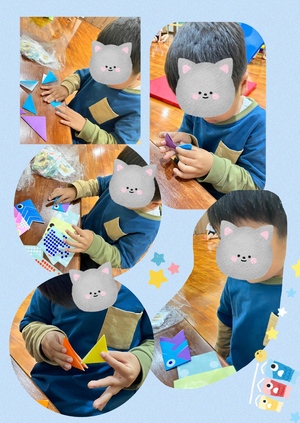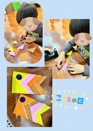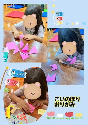 完成すると喜んで、「もっと作るー」と自分の好きな色で素敵な鯉のぼりができました✨