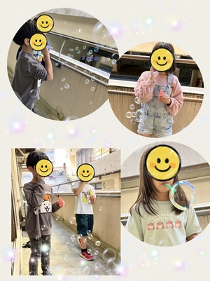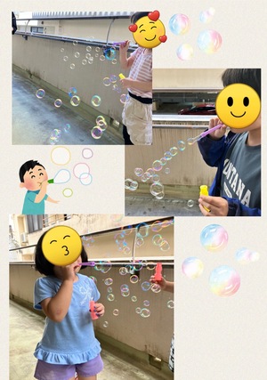 この日のシャボン玉は人数と時間の制限(お約束)がありました。約束の時間を守って、交代で楽しむことができました。