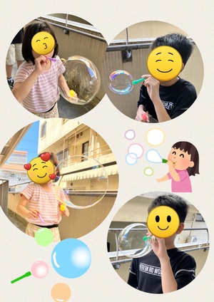 子ども達同士で、人が作ったシャボン玉をつぶしたり踏んづけたりするのはナシ!というルールを作ったりもしていました。仲良く楽しく遊ぶために大事なルールですね✨