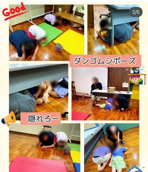 「ダンゴムシポーズ!」と予習している子や、